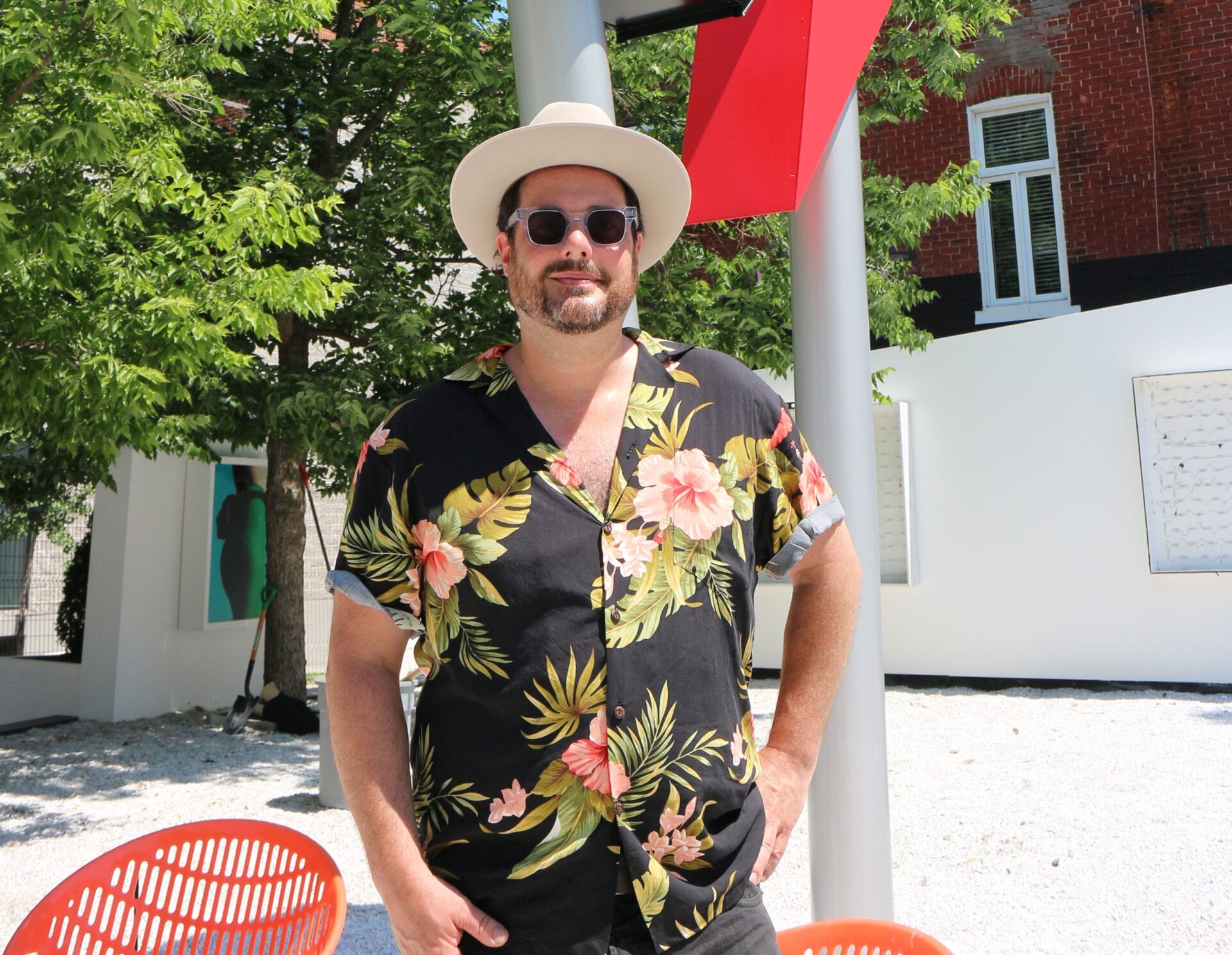«La Galerie Blanc est mon bébé depuis le premier jour, je suis content d’y retourner et de voir le succès qu’elle connaît. J’ai un background en photographie depuis des années, je trouvais qu’il y avait un manque d’exposition de la photographie. J’ai donc pensé pouvoir faire une exposition avec des artistes photographes et ce, dans le respect des artistes. […] À travers les années, on a réussi à innover ici [à la Galerie Blanc] et j’en suis vraiment très heureux», dit Alexandre Berthiaume, le concepteur-designer initial de cette galerie à ciel ouvert et qui succède à Nicolas Denicourt en tant que commissaire.