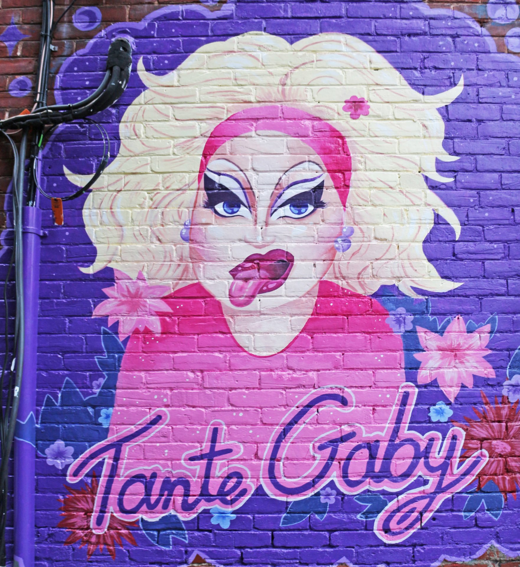 «L’idée originale de la murale revient aux propriétaires du Resto Village, Pierre-Luc Dupont et Mathieu Drapeau. Ils ont donc offerts un mur de l’établissement pour que l’on puisse peindre la fresque», poursuit Pascal Guilbault, costumier de plusieurs drag-queens de Montréal. Drag-queen, shooter girl, barman, etc., Tante Gaby a débuté sa carrière à l’Entre-Peau, il y a une trentaine d’années déjà. Puis, elle a enchaîné les postes et les rôles dans des clubs tels que le Play, le Sky, le Unity, le District Video Lounge, etc. À noter que le T-shirt à l’effigie de Tante Gaby est disponible à la boutique Mistr Bear et qu’une partie des profits de la vente est destinée à la lutte contre le cancer.