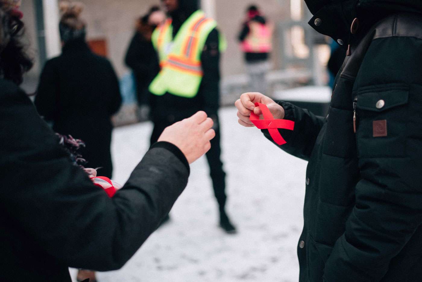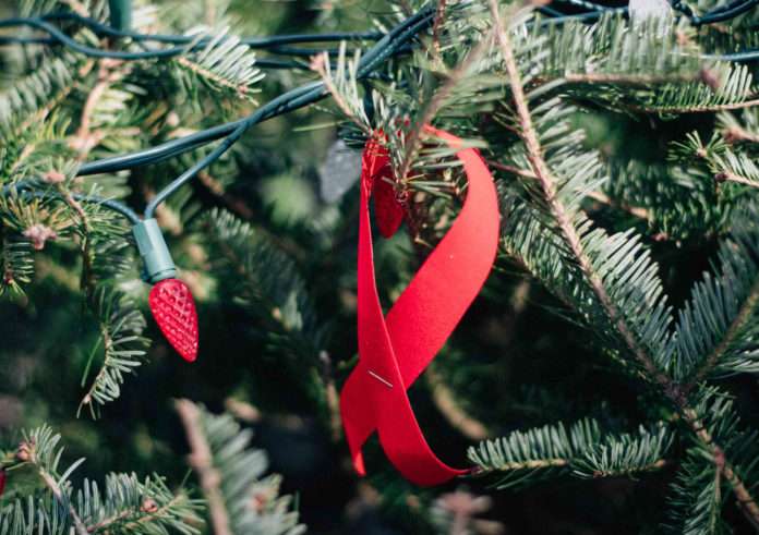 Par la suite, la petite foule a été invitée à accrocher un ruban rouge, symbole de la lutte contre le sida et à la mémoire des personnes disparues, sur l’arbre de Noël.