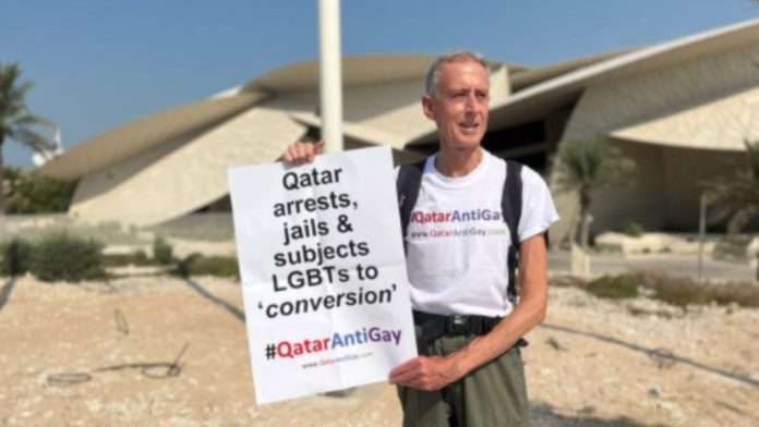 Peter Thatchell, qui avait été arrêté pour une manifestation similaire à l’occasion du Mondial-2018 en Russie, a raconté dans un communiqué s’être tenu “pendant 35 minutes” devant le Musée national à Doha avec une pancarte portant les mots : “Le Qatar arrête, emprisonne et soumet les LGBT à (des thérapies de) “conversion” #QatarAntiGay”, avant d’être interpellé par les forces de sécurité. Dans la vidéo, il explique qu’il s’exprime en soutien aussi aux femmes et aux travailleurs migrants du pays.