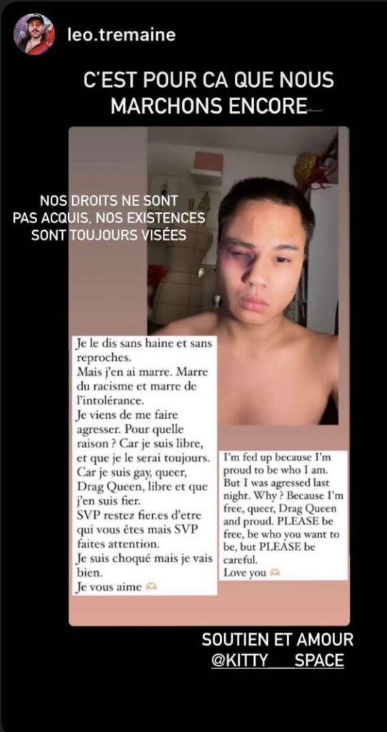 Si Kitty Space est connue du grand public français depuis son apparition dans la populaire émission Drag Race France, c’est en tant qu’Antoine, son nom civil, que l’agression a eu lieu.