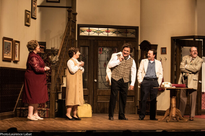 Ceux qui ont suivi la série auront un malin plaisir à retrouver leurs personnages fétiches. Mais rassurez-vous, nul besoin de la connaître pour profiter du rire que provoquent les situations burlesques et les répliques parfois tranchantes de ces joyeux compagnons. En plus de la prouesse des comédiens sur laquelle nous reviendrons, il est important de faire mention du travail des concepteurs. Une attention toute particulière a été apportée à chaque détail. Décors, costumes, ambiance et accessoires vous offriront un aller simple dans les années 1980. Là où la série s’est terminée et où la pièce commence. Le lever du rideau est une expérience en soit comme un retour instantané dans ce décor planté dans nos téléviseurs. C’est donc avec grand délice que l’on retrouve dans cette pièce les personnages bien campés de la série. On assiste à un véritable tour de force de ces comédiens qui par leur talent nous transportent immédiatement dans l’atmosphère à la fois bon enfant et burlesque de cette histoire datant d’une autre époque.