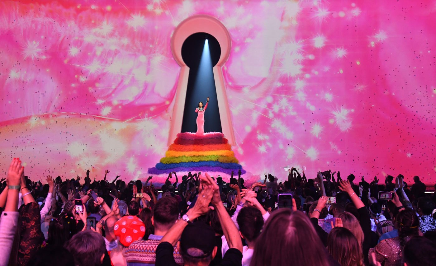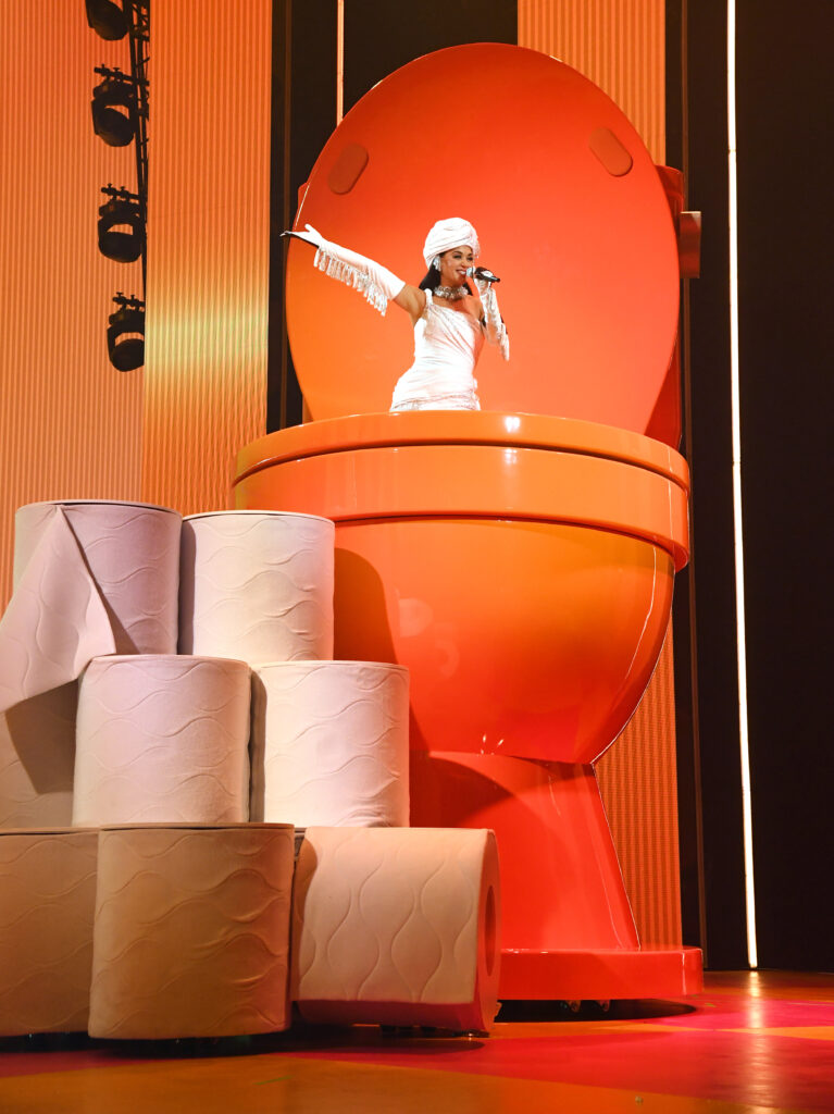 Le moins qu’on puisse dire, c’est que l’artiste est allée très loin avec ce spectacle à moitié fantastique, à moitié hallucinant et totalement fou d’ingéniosités. On peut la voir, entre autres, en train de twerker sur des rouleaux de papier toilette pendant qu’un étron émerge d’une cuvette de toilettes géante au son de California Gurls, ou à un autre moment discuter avec un masque chirurgical géant parlant. Un vrai trip.