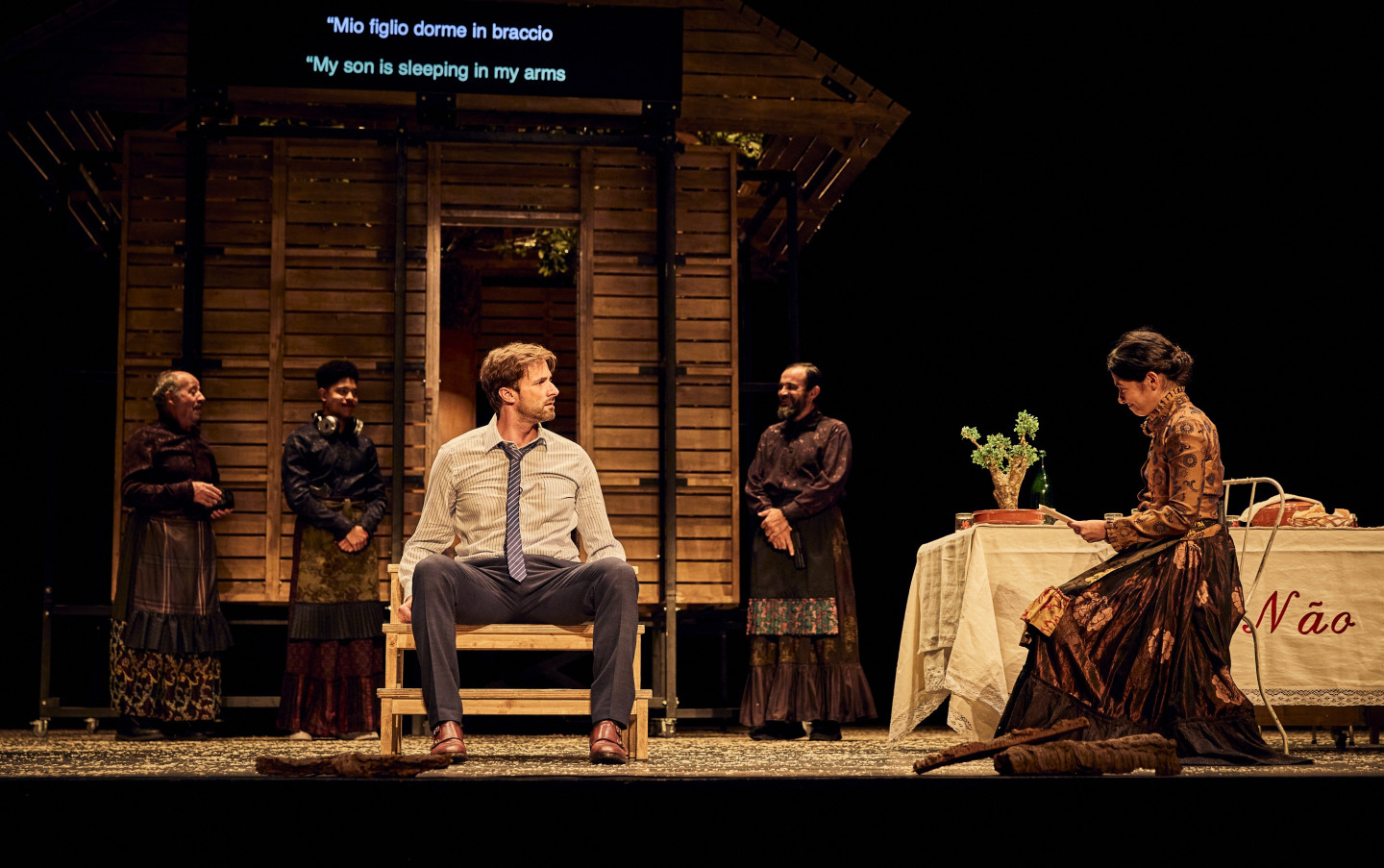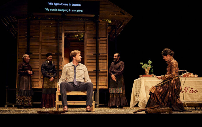 La force de Tiago Rodriguez tient en reprenant un thème largement visité et étudié par de nombreux auteurs est de l’inscrire dans notre époque actuelle. Catarina et… se situe dans le Portugal d’aujourd’hui et dans le souvenir de la dictature salazariste qui a pris fin en 1974 avec La révolution des œillets et dont on fête cette année les 50 ans. Ceci n’est pas un hasard dans le choix de l’homme de théâtre portugais, Tiago Rodriguez, d’en tirer une fable philosophico-politique et d’y mettre en miroir flou mais présent la montée des régimes autocrates que nous vivons autour de nous. Et de nous poser la question de savoir ce que nous ferions et jusqu’où irions-nous en tant que simple citoyen.ne pour défendre et protéger ce en ce que nous croyons. Et si nous ne faisons rien, devenons-nous des complices des oppresseurs.