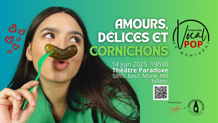 INFOS | AMOURS, DÉLICES ET CORNICHONS – 14 juin – 19 h 30 – 21 h 45, Théâtre Paradoxe – 5959 Bd Monk, Montréal