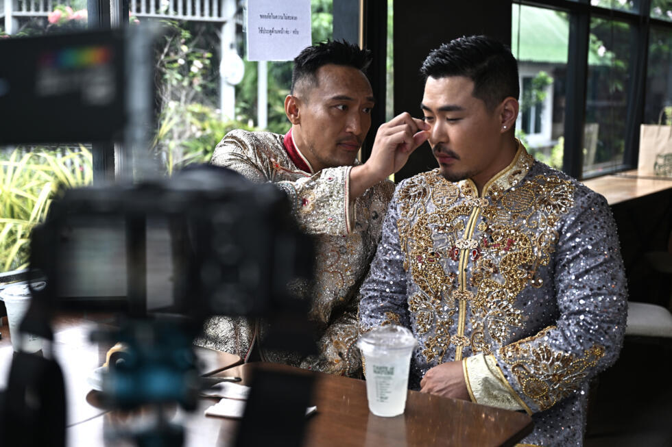 Wang Zengyi, 41 ans, et Song Jihan, 29 ans, ont profité du week-end des célébrations de la première marche des fiertés depuis cet événement pour se passer la bague au doigt samedi. En vestes blanches, il ont échangé les alliances – portées par un caniche – et prononcé leurs voeux, parfois les larmes aux yeux, devant leurs proches lors d’une cérémonie sur une plage proche de la station balnéaire de Pattaya, près de Bangkok.