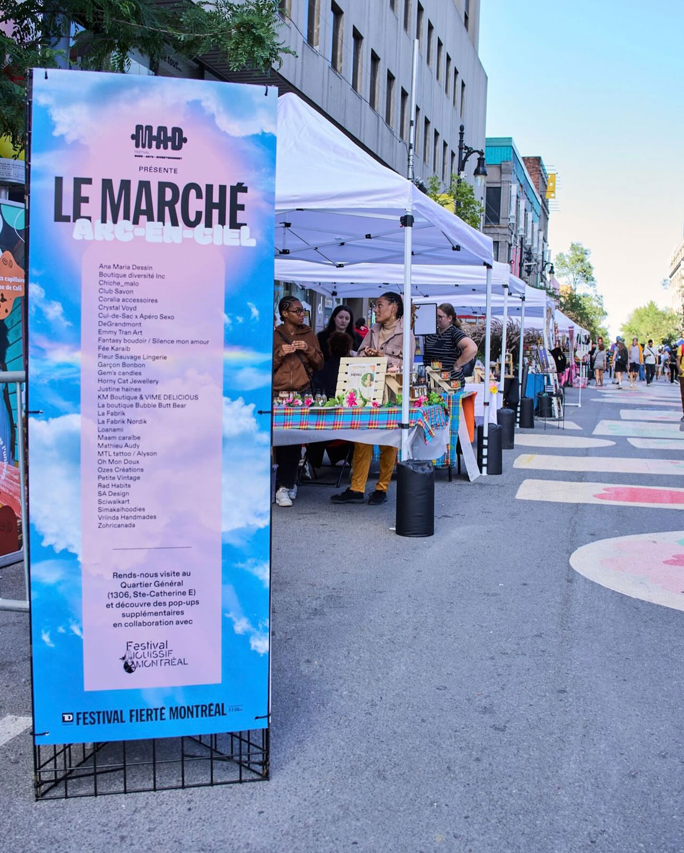 La première édition du Marché Arc-en-ciel (1er au 3 août) a mis de l’avant des artistes, artisan·e·s et entrepreneur·e·s queer, accueillant plus de 115 000 visiteur·euse·s. Le Quartier général du festival, installé pour la première fois rue Sainte-Catherine Est, a offert un espace de rencontre avec kiosque d’information, exposition photo communautaire et boutique. Les Journées communautaires des 8 et 9 août ont pour leur part rassemblé plus de 400 000 personnes.