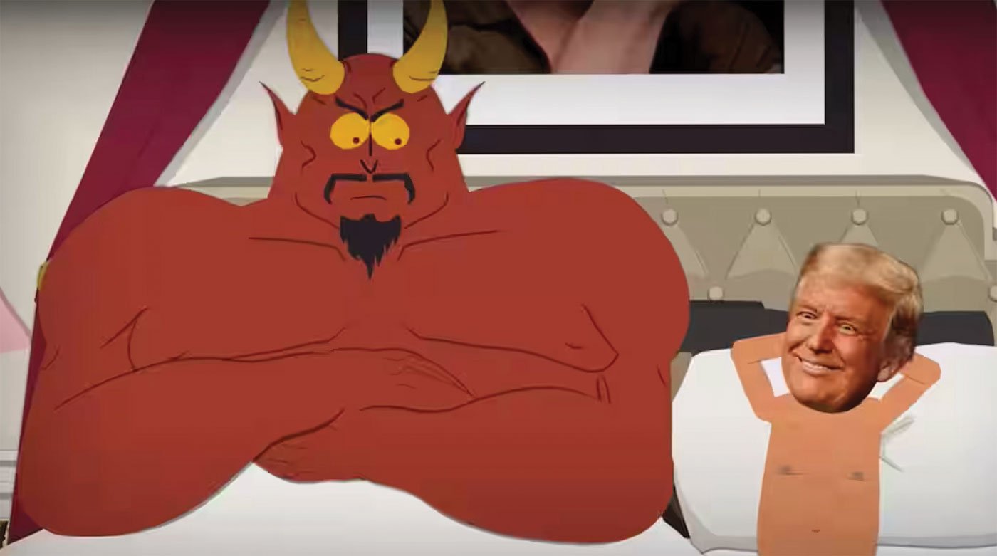 La scène est identique à celle du film de 1999 South Park: Bigger, Longer and Uncut (South Park : plus grand, plus long et sans coupure), où Satan était en relation avec Sadam Hussein. Ce qui est ici présenté comme problématique, ce n’est pas la relation homosexuelle des deux personnages, mais plutôt l’attitude abusive et manipulatrice de Sadam Hussein/Donald Trump à l’endroit du Prince des Ténèbres. Le ton calme et mesuré de Satan ne fait d’ailleurs que mettre l’accent sur l’intolérance excessive de son amant.