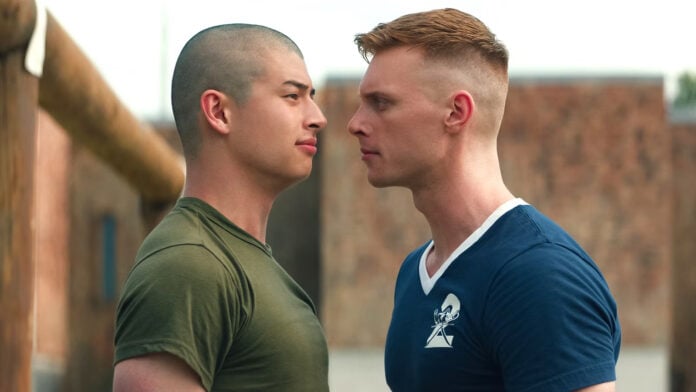 Boots raconte l’histoire de Cameron Cope (interprété par Miles Heizer, qu’on a connu dans 13 Reasons Why), un jeune homme gai qui, en 1990, s’enrôle dans les Marines pour fuir un sentiment de vide et donner un sens à sa vie. Sur le terrain, il découvre un monde brutal, viril à l’excès et profondément homophobe. Son meilleur ami Ray (le prometteur Liam Oh) l’accompagne dans ce parcours initiatique, où la dureté du corps militaire se heurte au silence imposé de l’époque. À ce moment-là, rappelons-le, être gai dans l’armée américaine était illégal. Il faudra attendre 2011, avec l’abrogation de la politique Don’t Ask, Don’t Tell, pour que les soldats LGBTQ+ puissent enfin servir ouvertement.