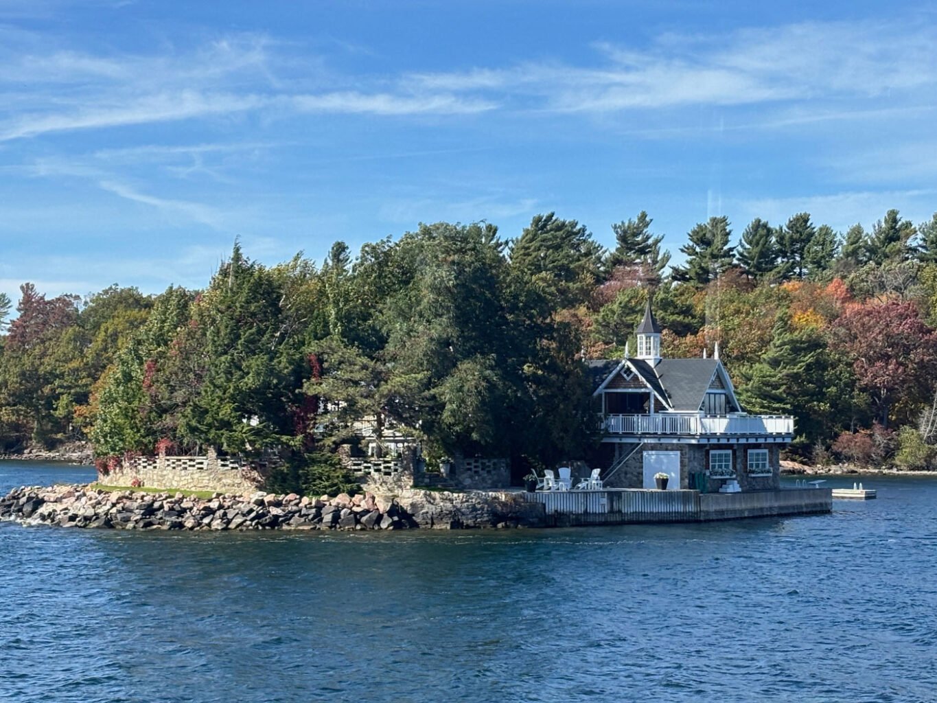 Tout au long du trajet, le bateau a croisé des bâtiments historiques, des éoliennes, une ancienne prison, des maisons majestueuses en bord de l’eau, un phare, des chalets de différents styles, une île consacrée à une communauté fermière, un yacht club témoignant du niveau de richesse très élevé de plusieurs secteurs — sans oublier la présence incontournable des Forces armées canadiennes et de la Gendarmerie royale du Canada à Kingston. Par moments, la croisière était agrémentée d’informations historiques fort intéressantes livrées par un·e guide dynamique, quoique souvent couvertes par les bavardages ambiants. En effet, le niveau de décibels rivalisait avec le niveau de joie dont j’ai été témoin du début à la fin.
