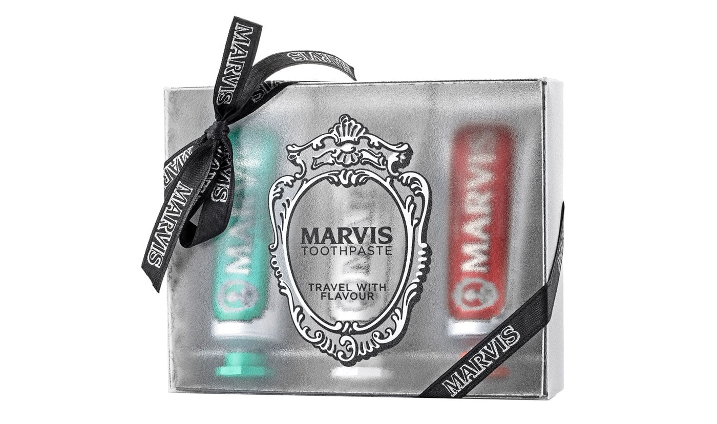 La marque italienne Marvis propose des dentifrices et bains de bouche aux saveurs uniques, dans des emballages élégants et rétro. Leurs formules concentrées — sans alcool — favorisent une haleine fraîche, réduisent la plaque et aident au blanchiment. Eau de bouche concentrée : env. 23 $. Coffret 3 dentifrices Marvis : env. 35 $ Un cadeau chic, pratique… et délicieusement parfumé.