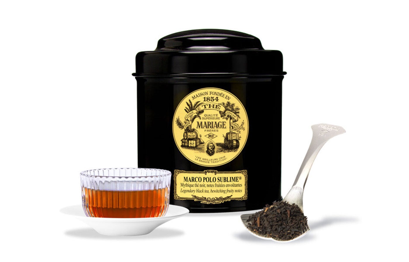 Le thé noir Marco Polo Sublime de Mariage Frères dévoile toute la richesse aromatique de son célèbre mélange, sublimé par des feuilles de thé d’une qualité exceptionnelle. Véritable voyage sensoriel, il marie la douceur des fruits rouges et des fleurs exotiques à la profondeur d’un thé noir finement travaillé. Présenté dans une élégante boîte noire et dorée, il incarne à la perfection le savoir-faire et l’élégance de la maison de thé française. Disponible à la Maison Générale, rue Laurier à Montréal.