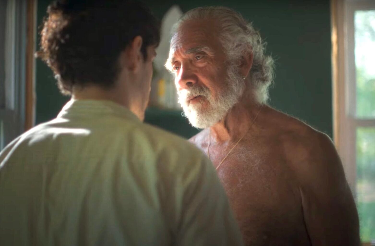 L’un des grands plaisirs du film tient aussi à la façon dont Castro suggère la profondeur intérieure des personnages qu’Adnan croise, même lorsqu’ils ne font que passer. On sent que chaque homme a un passé, des contradictions, des fragments d’existence qui dépassent le cadre. Il y a une histoire dans les mitaines accrochées au vélo de Yariel. Il y en a une aussi chez Sal (Ezriel Kornel), un septuagénaire neurochirurgien et comédien à ses heures, ours doux devenu artiste, qui brode des tapisseries colorées représentant des scènes BDSM et des orgies joyeusement explicites. Même une courte scène de cruising se termine sur un échange drôle qui donne envie de connaître cet homme anonyme. Castro excelle à rendre la présence de ce qu’on ne sait pas — et à faire du non-dit une émotion.