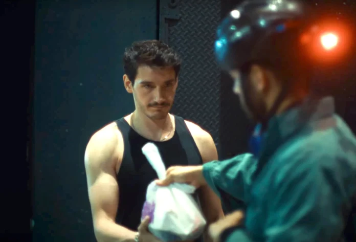 Le film s’ouvre sur une scène qui résume toute l’esthétique — et l’éthique — de Castro. Adnan ouvre les applis pour se trouver un gars pour jouir, puis se retrouve dans un parc face à Yariel (Joél Isaac), livreur à vélo au corps solide après son quart de travail. Une fellation rapide dans un coin sombre, puis un banc, une commande restante de pad kee mao dégoulinant : des nouilles drunken post-coïtales avalées avant même d’avoir échangé leurs prénoms. Castro filme une douceur inattendue, une intimité facile, l’évidence que le sexe peut être une langue — pas un choc, pas un programme, pas un jugement. L’érotisme n’y est jamais une provocation : c’est une forme de communication.