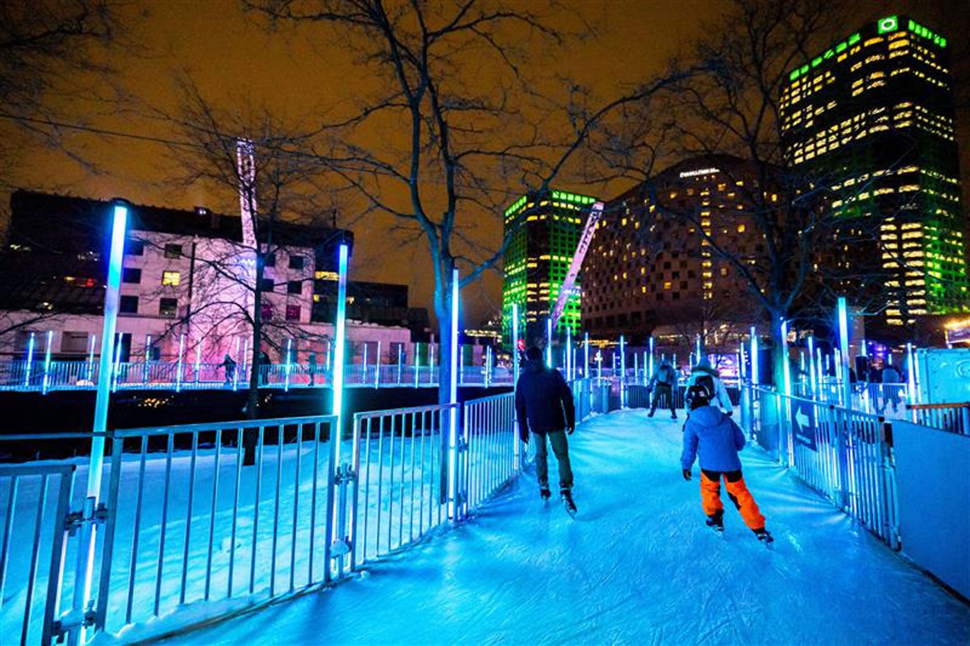 Les trois volets de Montréal en Lumière convergent sur la Place Loto-Québec, véritable terrain de jeu hivernal au cœur du Quartier des spectacles. On y retrouve le chalet de patin Tim Hortons, l’incontournable Sentier de patin Loto-Québec, la Station DJ Rogers pour des soirées rythmées, sans oublier La Grande Roue Intuit TurboImpôt, qui promet une vue spectaculaire sur le centre-ville illuminé.