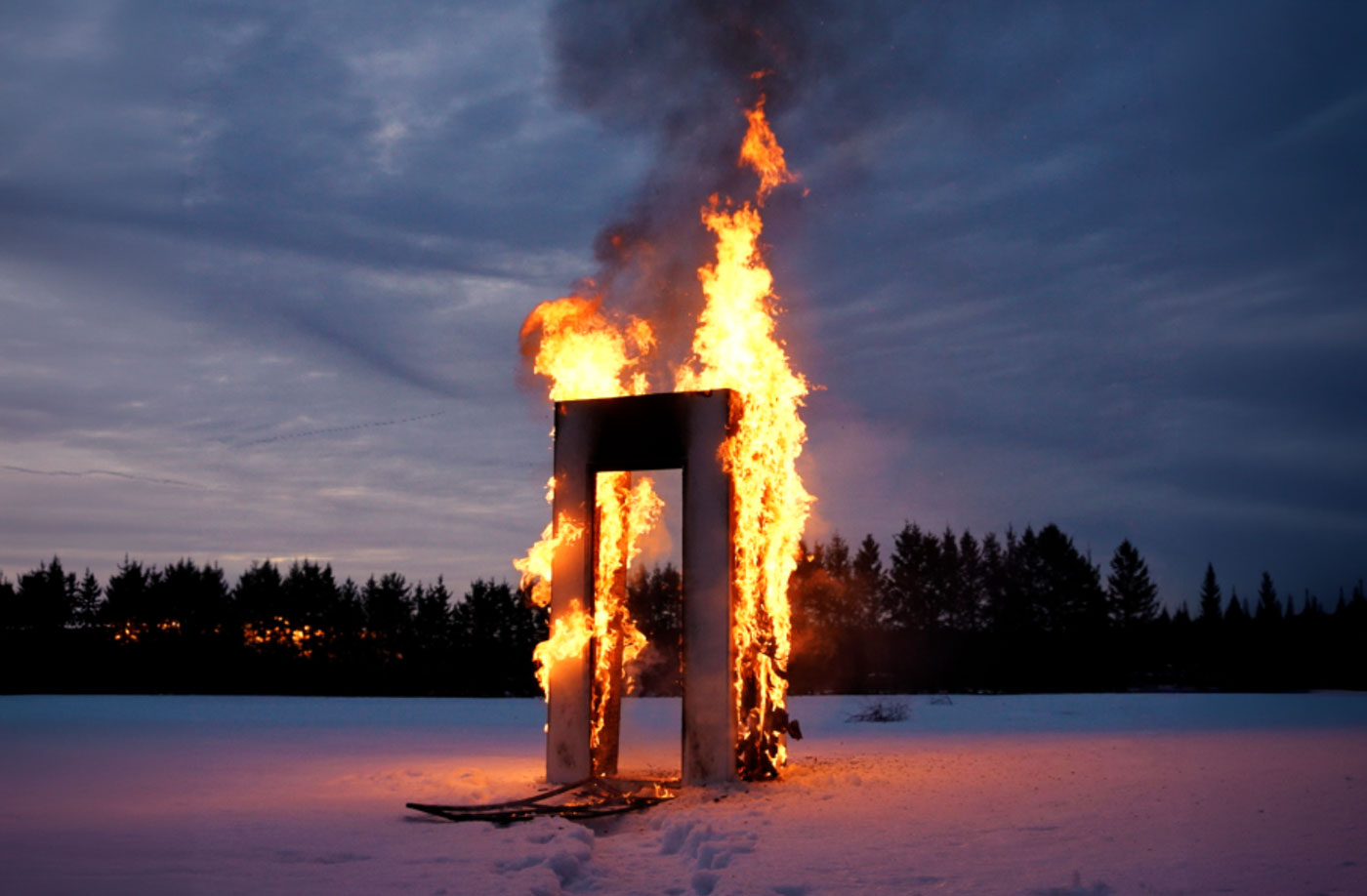 Le 4e espace nous fait découvrir la vidéo du placard en feu. Cela fut presque un exploit pour l’artiste et son équipe d’aller monter ce vrai placard en bois de 8 pi de hauteur, dans un champ, durant la nuit puis, de l’incendier vers 6h du matin, à l’aube. « Le placard est, oui, un rite de passage pour les personnes LGBTQ+, ici c’est le symbole de l’intangible mais qui devient tangible par la force du symbolisme du feu, de mettre le feu au placard, indique Alexandre Poulin. Trop de fois on doit encore rentrer dans le placard, comme des ainé.e.s qui vont dans des résidences pour personnes âgées (RPA) et qui doivent taire ce qu’ils sont. Ce n’est pas facile. Mais on constate aussi des reculs un peu partout dans le monde, on n’a qu’à voir ce qui se passe au sud de la frontière et même ici au Québec où il y a parfois des recoins où ce n’est pas facile de vivre ouvertement. C’est une expression du placard, encore une fois. »